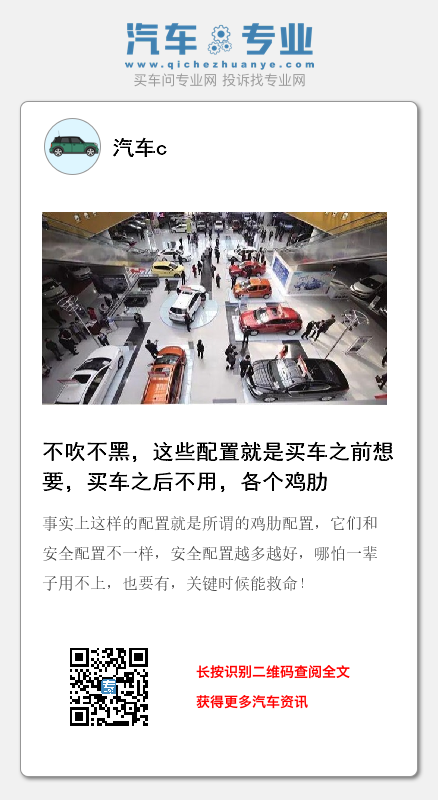 所以,其实很多配置在买车之前,看上去都很有用,但是买车之后用上两回之后,才发现鸡肋所在,或者说很多配置在日常驾驶中根本用不上,那么我们认为大家在买车的时候,还是要多考虑使用场景,千万别被很多广告歌宣传左右,有些配置用不上,就不要买!花冤枉钱不值得!