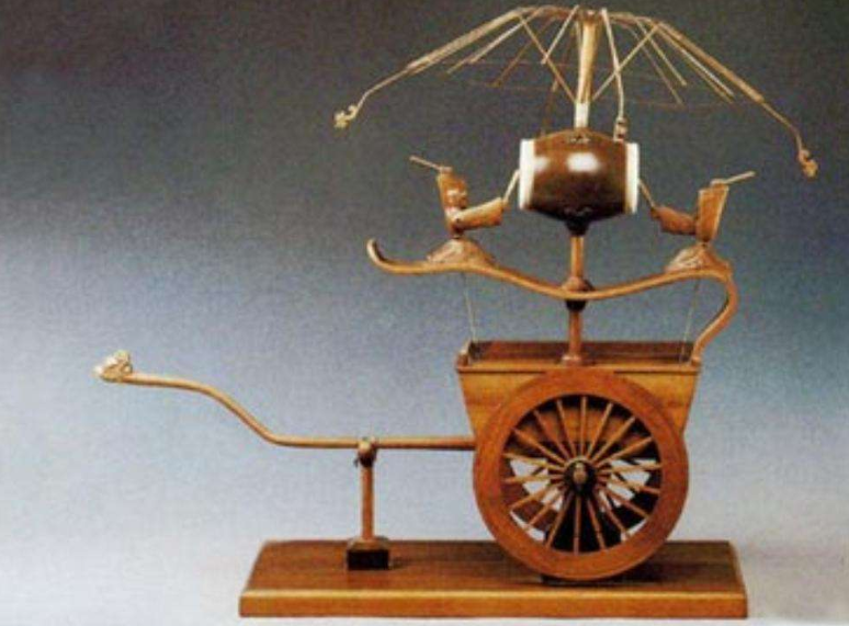 这种机械式里程表,要知道车子开了多少公里,只要计算车轮一共转了多少圈就行。这种方法和一千八百多年前的“记里鼓车”原理一样,古代皇帝出行时,仪仗车里必备的一种车子,车子每走一里,里面的木头人就敲一下鼓,发出一种声音,走十里又会发出另一种声音,用来记录已经走了多远,以及还剩多远。