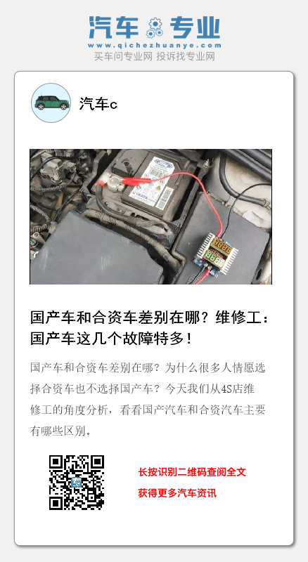 这就是我的朋友在维修过程中,发现的国产车和合资车的区别,当然,不可否认,国产车近年来发展迅速,正在缩小与合资车的差距,只要国产汽车在品质方面更加用心,相信未来一定能赶上甚至合资汽车。