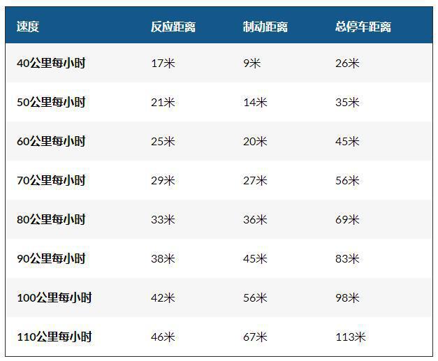 从上表可以看出,时速越高,反应距离就越长,就拿常见的60km/h的时速来看,这种情形下总制动距离需要45米,很多车主可能都觉得有些夸张,别忘了这种情况下,反应距离就占了25米,想要在行车过程车避免车祸,在车距没办法保持合理范围之内的前提下,小心谨慎驾驶保持警惕才是最重要的,这样就可以尽可能的降低反应距离,避免车祸和碰撞。
