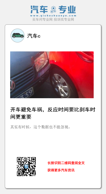 言归正传,刹车制动性能不能忽视,在实际用车过程中,这只是一个基础,更重要的还是在驾驶员本身。因为制动距离从来都不是只看汽车的配置和性能决定,是由反应距离和实际刹车距离组成,也就是说从驾驶员发现前方情况开始,车辆依旧保持行驶状态,到真正踩下刹车这段时间叫做反应时间,这段路程叫做反应距离。