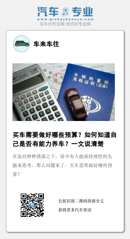在面对种种诱惑之下,很少有人能保持理性的头脑来思考,那么问题来了,买车需要做好哪些预算?