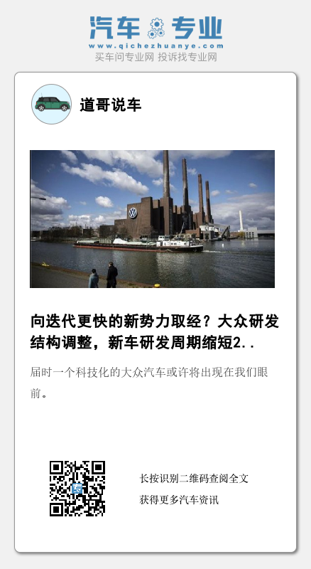 而结合此次大众汽车研发结构调整来看,大众汽车将进一步推进自身在电动化、数字化、智能化方面的转型,届时一个科技化的大众汽车或许将出现在我们眼前。