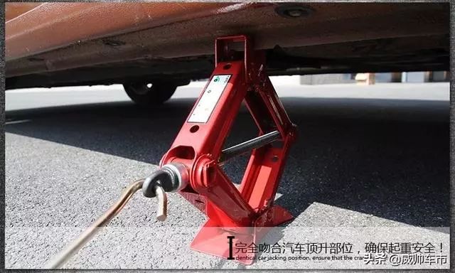 车身中部两侧下方会有一条筋一样的部分,这条部分上会有凹槽或卡口(不明白就看图片),一定要顶在这些地方,然后再对轮胎进行拆卸更换。