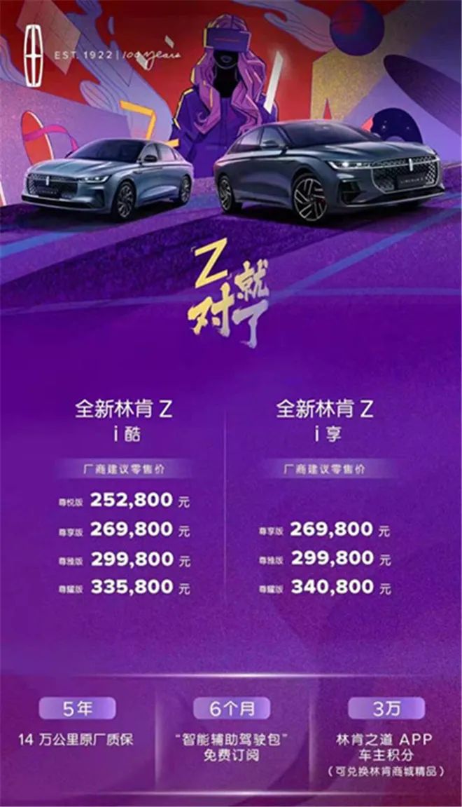 3月12日晚,林肯旗下的全新轿车—林肯Z正式上市。新车共推出7款车型,官方指导售价为25.28-34.08万元,相比起此前林肯Z的25.5-34.2万元的售价区间有所降低。与此同时,官方还提供了5年14万公里原厂质保、6个月“智能辅助驾驶包”免费订阅,以及在林肯之道APP上的30000车主积分(可兑换林肯商城精品)的权益。