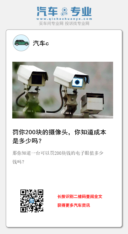 如果论中国司机最怕什么的话,那么首当其冲就是碰瓷。不过随着行车记录仪的普及,碰瓷已经不足以威胁司机的财产处置权。这时排在第二名的电子眼,就开始凸显出自己的恐怖效应!那你知道一台可以罚200块钱的电子眼值多少钱吗?