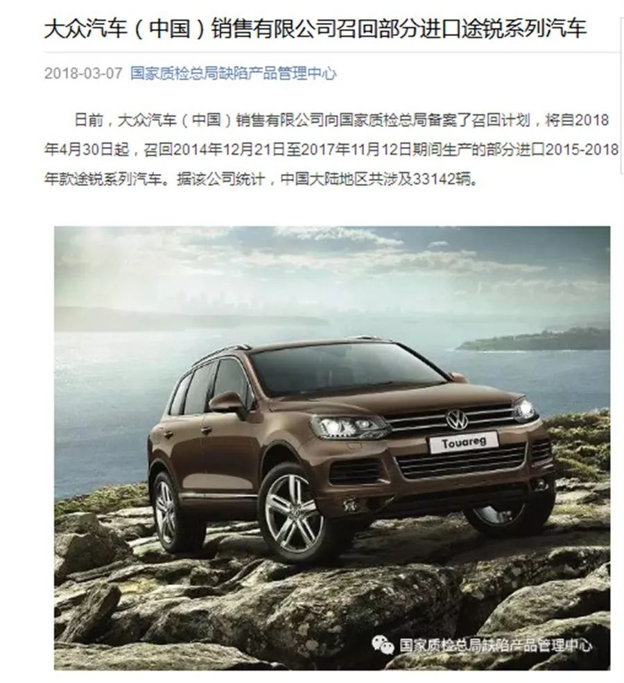2018年:大众途锐——知错就改,但近年大众汽车质量问题频发