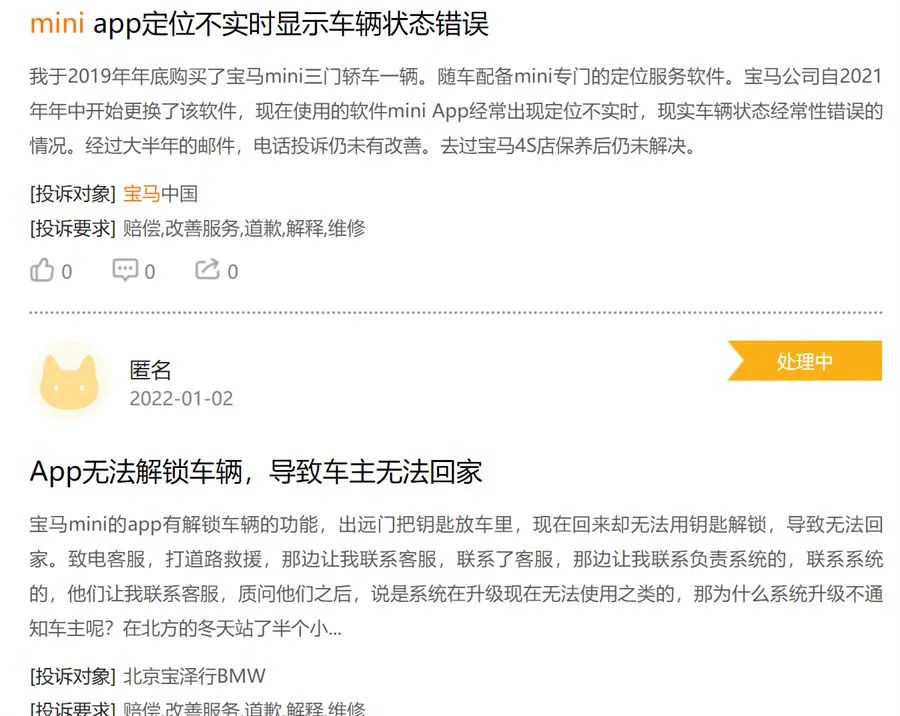 小编在搜索各大平台上的车主投诉后发现,近年MINI的问题虽然投诉量没那么多,但对于问题客服总是推皮球、或者干脆置之不理。如App系统问题、排气阀异响等,都没有得到很好的解决,看来“美丽的代价”还真不小。