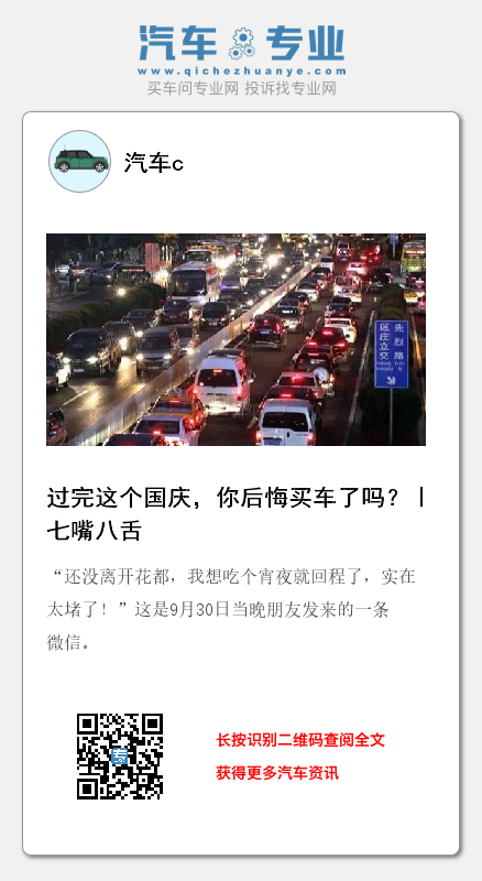 其实不光是节假日堵车,平时工作日也会遇到高峰期拥堵以及车位短缺的难题,由此带来的高昂用车成本,想必会让大家产生后悔买车的念头。趁着国庆后上班的第一天,我调查了公司里的几位老司机,看看这个国庆会否让他们的购车观产生改变。