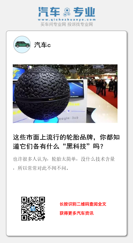 细数了一下身边的朋友,似乎大家关注汽车的焦点多在外观、内饰、配置上,懂行一点的则会重点关注动力、油耗、底盘、安全性能等方面。但还有一个常常被大家忽视的关键因素——轮胎。