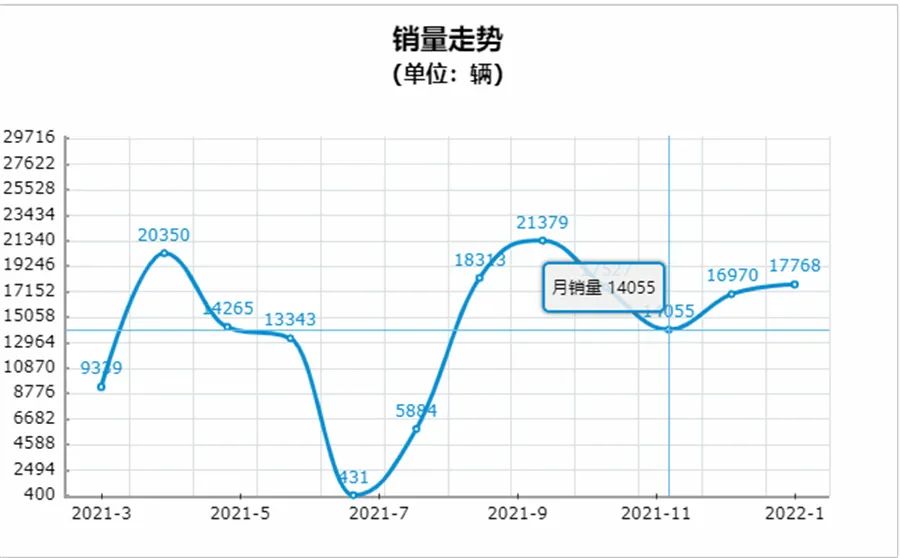 公开数据显示,2021年1-12月份,传祺GS4累计销量为72087台,月均销量为6007台左右。2022年1月份,广汽传祺GS4单月销量为8182台,相比2021年同期,传祺GS4的销量下滑了43.01%。