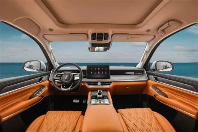 配置上,坦克500更是简单粗暴。从最低配车型开始,坦克500的车舱之内就覆盖了大量皮革与软包,而能够实现包括实时导航、手机互联、远程车联、语音交互等等功能的12.3英寸数字仪表盘与14.6英寸液晶触控屏也是全系标配,驾驶辅助中也可实现全速自适应巡航+360度全景影像。当然了,低配车的车舱中还将找到分区自动空调、多色氛围灯、后隐私玻璃、前排电动座椅等等功能配件。