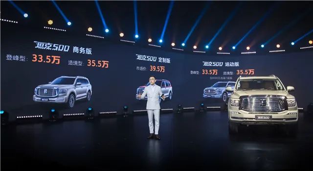 尽管坦克500的预售起步价超过了30万元,几乎达到了国产燃油车的天花板,但也丝毫未能阻止消费者的热情,预售当天一小时内的订单便超过了2万台,火爆程度直逼坦克300。3月18日在万众期待下,坦克品牌旗下的第二款车型——中大型商务豪华SUV坦克500正式迎来上市,新车共推出商务版、运动版、定制版以及黑武士四个版本,同时提供 5 座、7 座车型可选,售价区间33.5万元-39.5万元。