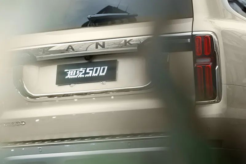 坦克500的车尾采用较为方正的整体造型设计, 并没有采用过多的线条进行修饰,整体看起来较为简洁大方,竖排状造型的LED尾灯组造型也非常别致。而商务版和运动版在尾部也有所不同,运动版采用的是外挂式备胎设计,而商务版则把备胎放在了后备箱底部,从气势上来看,明显运动版更气派。