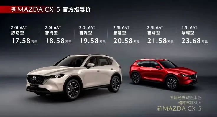 尽管是一款中期改款车型,新MAZDA CX-5仍然由内到外全面革新,在造型、智能、安全等方面实现16大产品力进化。在提升产品实力的同时,也满足了新时代年轻消费者追求个性、运动的用车需求。值得注意的是,与现款17.98-24.58万元的指导价相比,新MAZDA CX-5的售价更是进一步调低,可谓加量不加价。