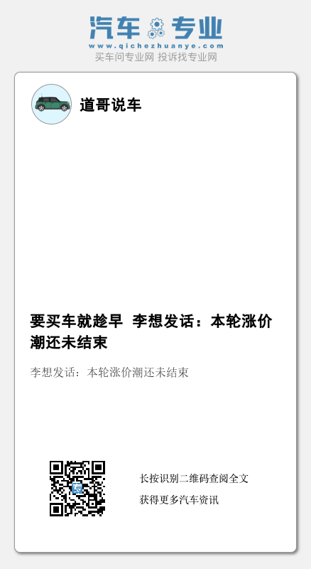 3月19日,理想汽车CEO李想在其微博上发声表示:“目前来看,和电池厂商已经合同确定了二季度电池涨价幅度的品牌,基本上就都立刻宣布了涨价。还没有涨价的,大部分是涨价幅度还没有谈妥的,等待谈妥后也普遍会立刻涨价。二季度电池成本上涨的幅度非常离谱。战争、政治、疫情让买车还能升值,美国二手车价格整体上涨了30%。”