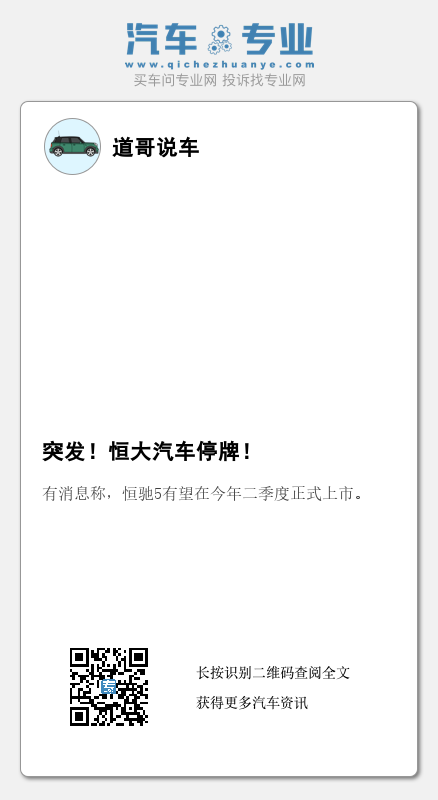 工信部官网近日发布《道路机动车辆生产企业及产品》(第353批),其中恒驰5(图片)位列其中,这意味着恒驰5已拿到生产和销售环节的“通关批文”,可开始对外公开预售。与此同时,有媒体从相关渠道获取到恒驰5实车图片,其中内饰的部分设计细节也得到了曝光。作为恒大汽车首款产品,恒驰5定位为紧凑型纯电SUV,售价预计会在15万-24万之间。有消息称,恒驰5有望在今年二季度正式上市。