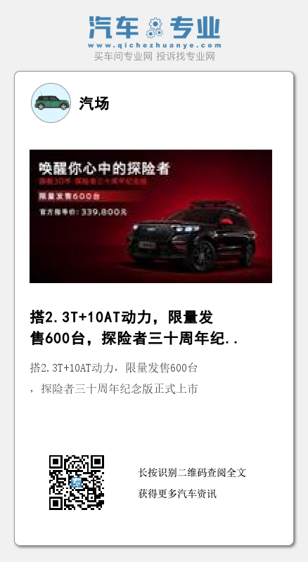搭2.3T+10AT动力,限量发售600台,探险者三十周年纪念版正式上市