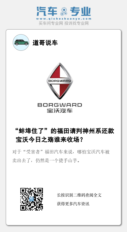 如今的宝沃汽车或许不会成为神州系偿还福田汽车款项的助力,反倒有可能让福田汽车再度体验“烫手山芋”的感觉。