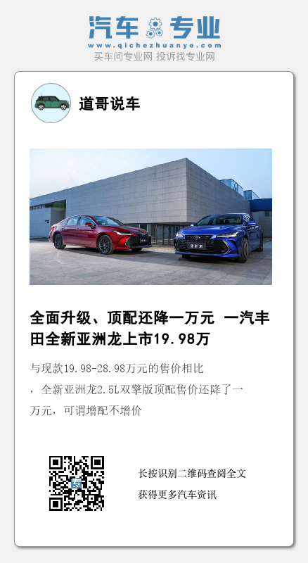 作为一款年度改款车型,全新亚洲龙在设计、配置、安全及智能互联等多领域进行创新升级,为用户带来超越期待的驾乘体验,再度刷新中高级轿车的标杆定义。值得一提的是,与现款19.98-28.98万元的售价相比,全新亚洲龙2.5L双擎版顶配售价还降了一万元,可谓增配不增价,诚意十足。