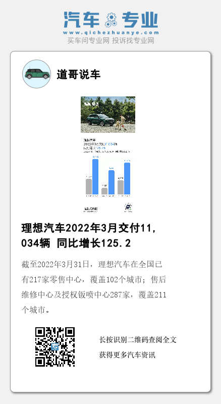 截至2022年3月31日,理想汽车在全国已有217家零售中心,覆盖102个城市;售后维修中心及授权钣喷中心287家,覆盖211个城市。