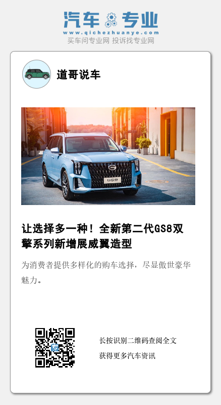 今年以来,油价持续上涨成为当下消费者十分关注的话题,也促使他们把更多的注意力放到没有续航焦虑又省油的混动车型上。作为广汽传祺“智能化+混动化”战略落地的首款车型,全新第二代GS8双擎系列是首款搭载丰田THS混动技术的中国品牌车型,也是全球首款采用2.0T发动机搭配丰田THS混动技术的车型。