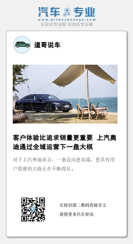 【文/道哥说车 听风吟】“上汽奥迪的使命是提升奥迪品牌形象,希望在带来创新产品的同时,也带来创新的服务”上汽奥迪营销事业总经理贾鸣镝曾如是说。