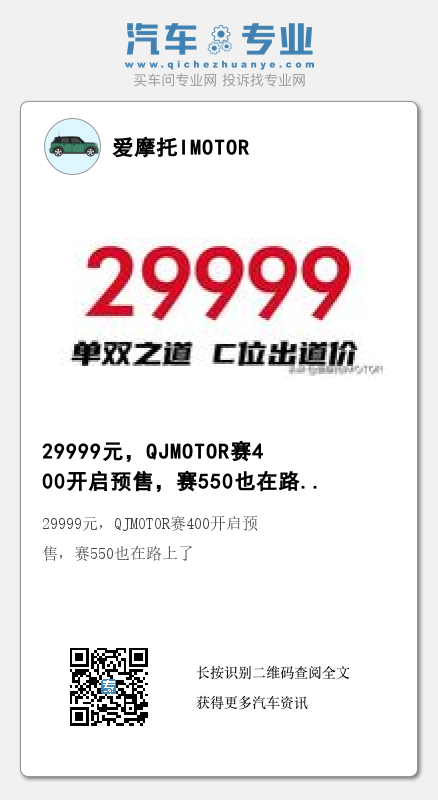 29999元,QJMOTOR赛400开启预售,赛550也在路上了