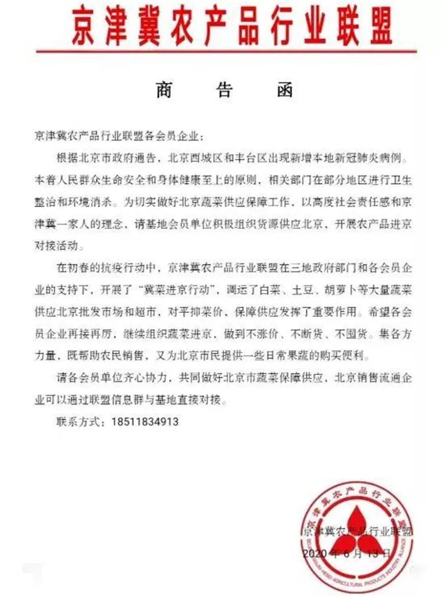另外,北京不少民间团体也是非常讲政治的,当时新发地疫情发生后,京津冀农产品行业联盟紧急组织来自河北的会员企业组织蔬菜货源,号召会员企业“组织蔬菜进京,做到不涨价、不断货、不囤货。