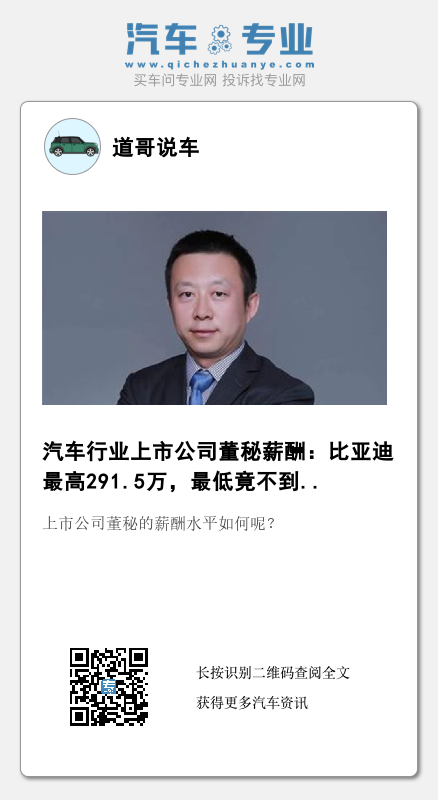 比亚迪、广汽集团、迪生力、中集车辆、亚普股份、京威股份、江铃汽车、一汽解放、万向钱潮、长城汽车、秦安股份在内的11家车企董秘薪酬水平均超过百万元,其中,其中比亚迪董秘李黔以291.5万薪酬领跑行业,广汽集团董秘眭立以262.79薪酬排名第二,迪生力以213.35万的董秘薪酬总水平排名第三,上述企业也是以上10家中仅有的董秘薪酬超过200万元。