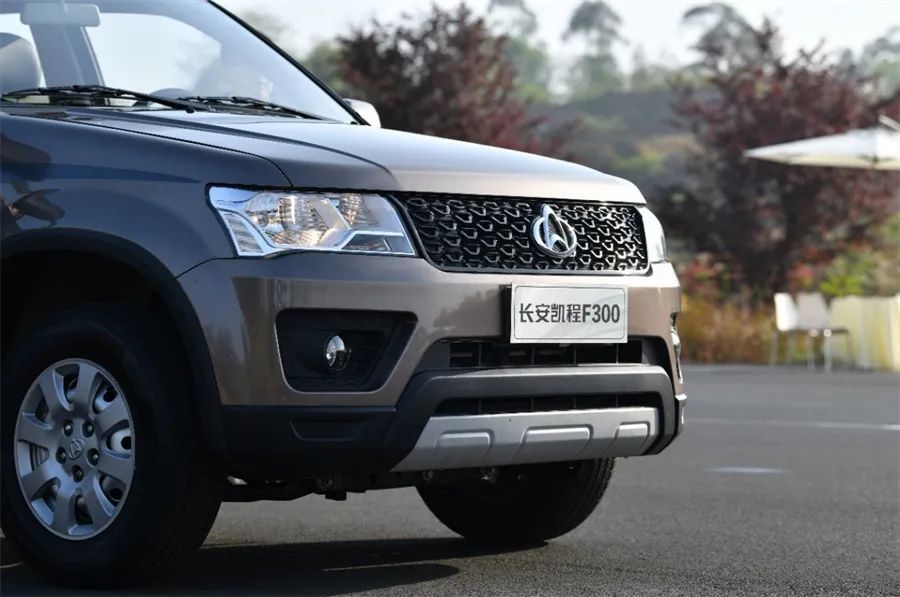 长安凯程F300的外观看起来比较简洁、实在,蜂窝状前格栅和方形大灯相结合,搭配下方的黑色包围和银色下护板,看起来比较舒服,有一定乘用车的风格,且车身侧面有彩色装饰条,突破了经济型、工具型皮卡简单粗暴的风格。总体来看,其外观不像时下流行的乘用车或者高端皮卡重视凌厉、运动风格的打造。