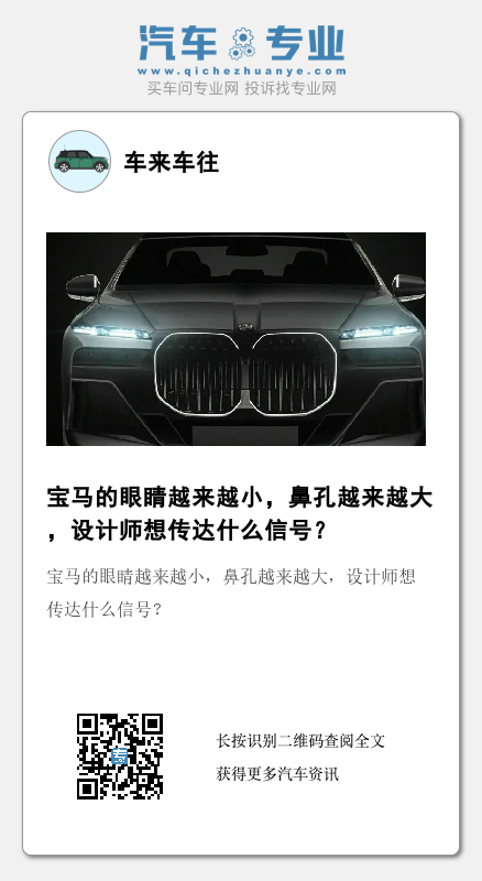 宝马再次颠覆了大众的审美观。近日,宝马发布了全新X7官宣图,眼睛越来越小,鼻孔越来越大,这似乎在传达什么信号。以前宝马强调的是操控和驾驶乐趣,如今不一样了,如今的宝马一直在强调品牌,至于为什么,看看下面这张图也许您就懂了。
