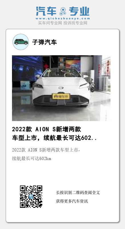 2022款 AION S新增两款车型上市,续航最长可达602km