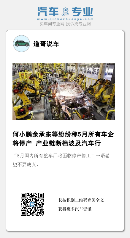 “如果上海和周边的供应链企业还无法找到动态复工复产的方式,5月国内所有整车厂将面临停产停工”,4月14日晚间,小鹏汽车CEO何小鹏在个人社交媒体上发文称,当前部分部委和主管部门正全力协调,也期望更多方面的支持和共同努力。