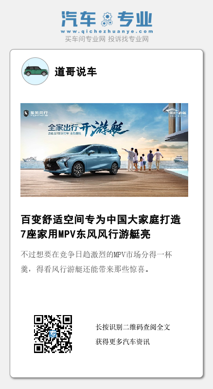 作为东风风行品牌焕新后的重磅战略车型,风行游艇基于“超级立方EMA平台架构”打造,定位中型MPV,主打7座家用MPV市场。风行游艇承担着东风风行进军家用市场的重要任务,战略地位不言而喻。