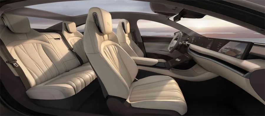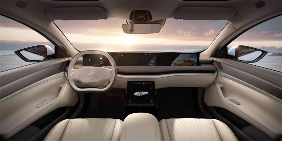 而在内饰方面,像智己L7这类所谓的智能豪华电动车虽不会过于花哨,但豪华感和科技感却营造的十分到位。其液晶仪表盘和中控屏相加在一起达到了26.3英寸,分辨率也达到了4K级的4320*720,位于副驾前方的屏幕也有12.3英寸,分辨率为1920*720。值得一提的是,其中控屏可一键进入“声光电全域沉浸超跑模式”,让驾乘者的每一个感官元素都能尽享驰骋的快感,当然其也被称之为“巨幅沉浸式智慧场景屏”,仅就字面意思来看就明白,其集成大量娱乐、智慧功能。