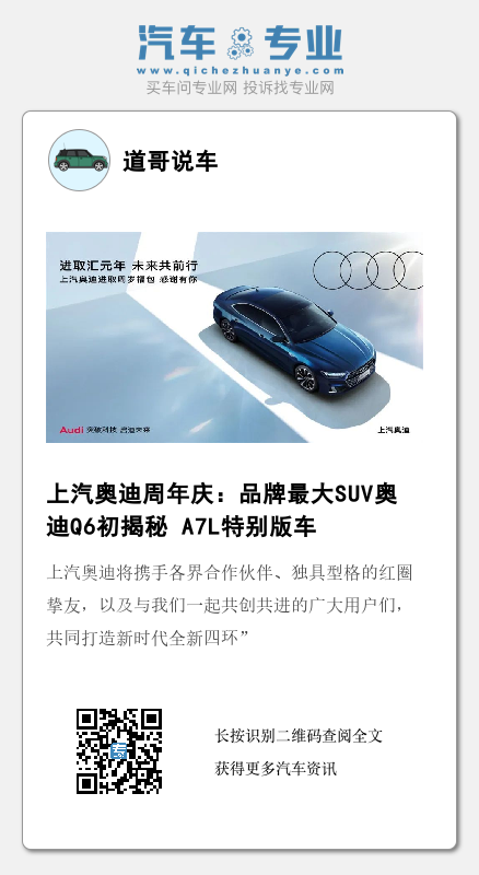 本次周年盛典中,上汽奥迪带来的干货并不少,品牌历史上最大的SUV——奥迪Q6的初次揭秘让人对其抱有强烈的探秘欲望,A7L特别版车型的上市也再次丰富了上汽奥迪的产品矩阵,两款重磅车型无疑让人对上汽奥迪今后的销量产生更强的信心。但还不止于此,上汽奥迪在渠道、用户运营方面短时间做出的成绩,让人们意识到,这个中国豪华市场新贵不仅来势汹汹、布局快速,似乎还正在走一条用户思维极强的别样奥迪路,上汽奥迪带给人的惊喜越来越多了。