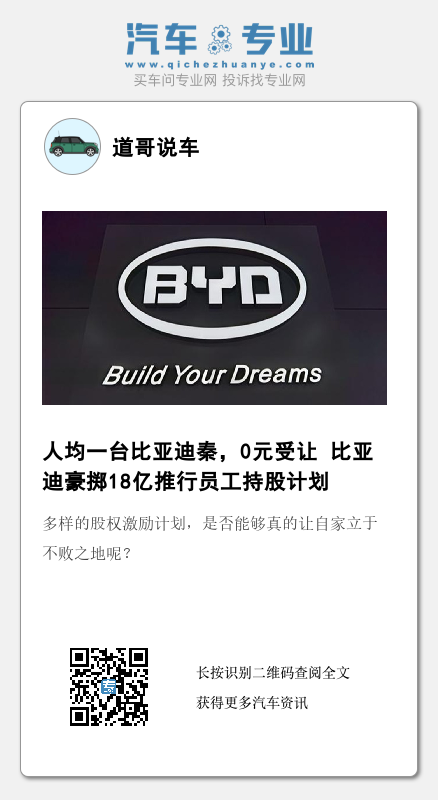 【文/道哥说车 听风吟】日前,比亚迪公告称,拟推出员工持股计划,参与总人数不超1.2万人。在长城汽车股权激励计划、广汽埃安混改计划以及众多新车企的“想法”或者计划中,员工持股或者说“股权激励”并不少见。