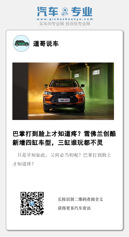 如今英朗凭借1.5L四缸发动机强势回归,但雪佛兰旗下许多车型却几乎没有什么存在感,创酷便是典型的案例。三缸是上汽通用的痛,同样也是雪佛兰的痛。被打疼的别克率先给英朗换回了1.5L四缸发动机,而雪佛兰今日也终于开始奋发图强了。