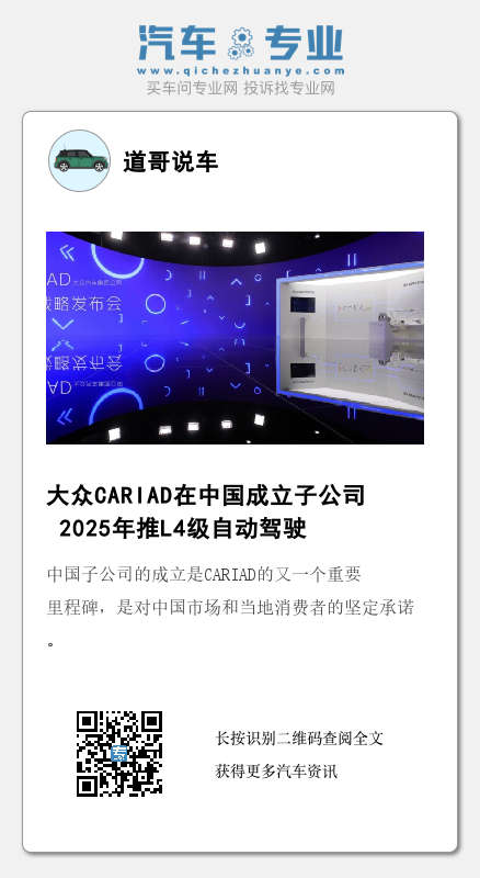 【文/道哥说车 听风吟】《道哥说车》消息,2022年4月28日。大众汽车集团旗下全新软件公司CARIAD于今日正式公布其中国战略,CARIAD中国子公司的正式成立。据了解,CARIAD前身为2020年建立的大众汽车软件事业部Car.Software Organisation,是大众汽车集团旗下100%控股子公司,总部位于德国。