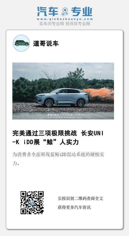 当然,能够顺利通过3项极限挑战,则完全得益于UNI-K iDD搭载的这套蓝鲸iDD混合动力系统。蓝鲸iDD混合动力系统是长安汽车坚持以用户为中心,从用户需求出发,不断探索燃油与纯电之间的最佳动力解决方案,是满足“全速域、全场域、全温域、全时域”用户使用需求的全域混合动力解决方案。2022年3月,蓝鲸iDD于UNI-K iDD上正式实现搭载落地,其全域化表现,让动力与续航实现兼顾,为用户打造全程“0焦虑”的出行新体验。