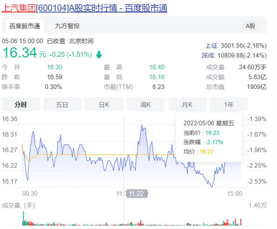 在这样的背景下,终于有整车企坐不住了,开始了护盘行动。5月4日晚间,上汽集团公告,控股股东上海汽车工业(集团)有限公司拟在未来6个月内,耗资16亿元~32亿元增持上市公司股份,且不设定价格区间。