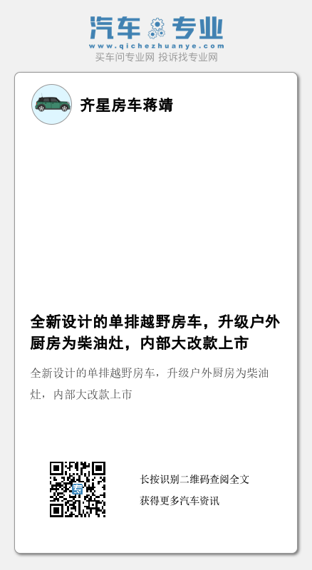 全新设计的单排越野房车,升级户外厨房为柴油灶,内部大改款上市
