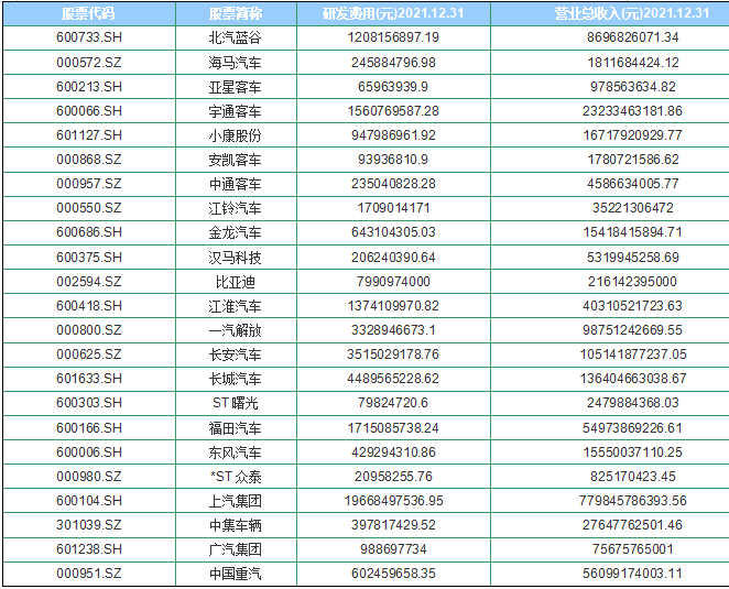 值得关注的是,即便以制造业的角度衡量,宁德时代的研发投入也并不值得骄傲。《道哥说车》编辑统计的23家整车上市企业中,包括上汽集团、长城汽车、比亚迪三家研发投入超过了宁德时代,其中上汽集团研发投入达到205.95亿元,相当于宁德时代当年研发投入的近三倍。而其余整车企业虽然在研发投入的具体金额方面逊色于宁德时代,在统计的23家整车企业中,研发发费率超出宁德时代也达到了4家。