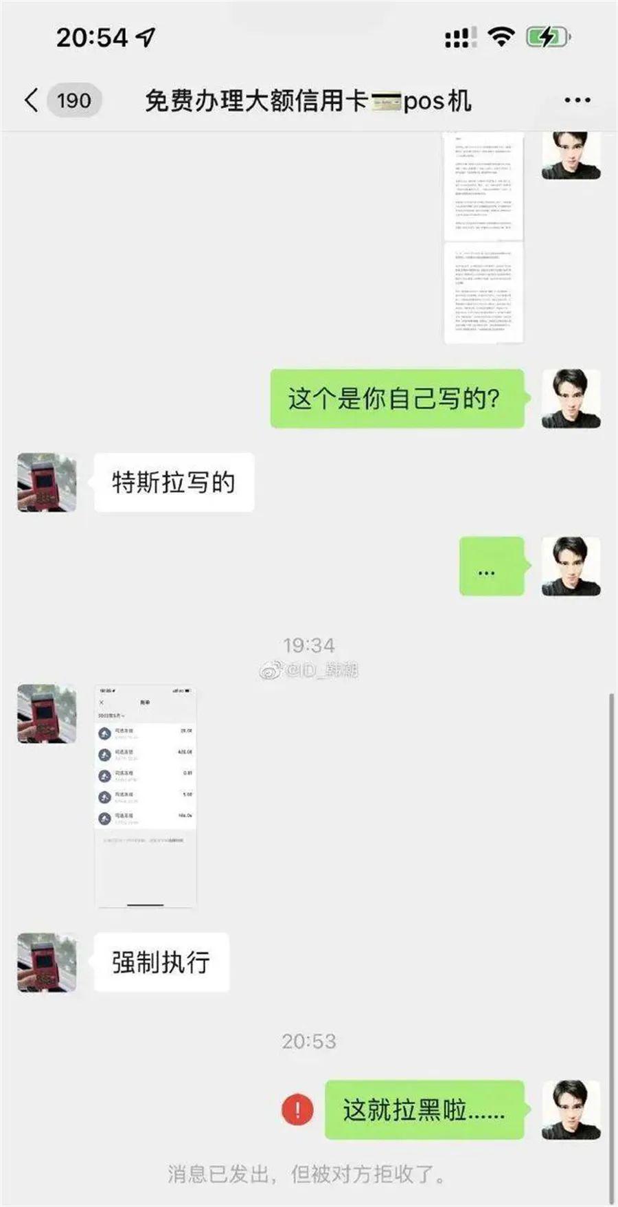 而上述其提到的人物,某种程度上可以看作其曾经的战友。而被波及的战友也相继出来发声,其提到的韩先生在网络上披露的信息显示,陈先生告知韩潮,其所发“道歉信”是特斯拉写的,并提到了“强制执行”几个字。而张女士披露的信息则显示:陈先生主动联系了张女士并向张女士发了100元红包以示感谢,但张女士并未接该红包,与陈先生所述“其他‘维权’车主也来联系我”相左,另外张女士也发出了不少的灵魂问题。(如图)