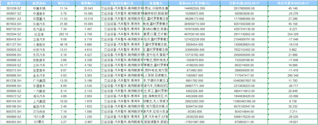【文/道哥说车 听风吟】此前承压的汽车股终于在最近焕发了青春,据同花顺iFinD数据显示,5月17日沪深23家整车股,除此前陷入股东纠纷的ST曙光外,所有整车股股价均出现上涨。其中,中集车辆、中通客车、长城汽车等个股纷纷涨停,一股“汽车牛市”的气息拂面而来。