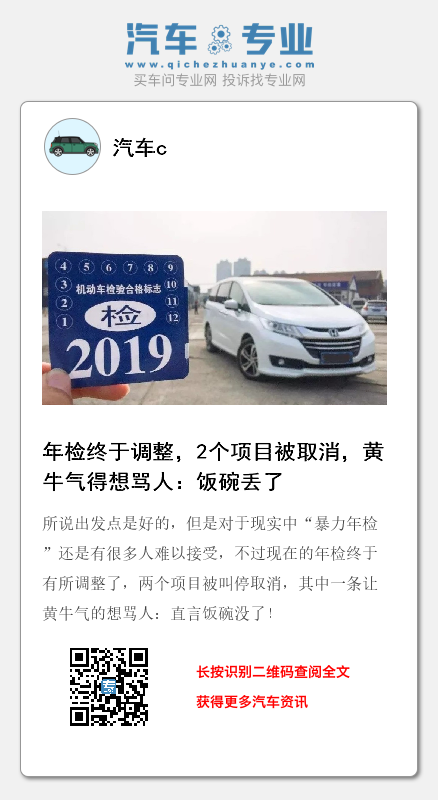 现在汽车的普及程度非常的广泛,买车也不再是一件困难的事情,但是开车和养车这两件事情真的是需要车主们操碎了心。车开不好会发生车祸,保养不好会提前报废,自从有了车就没有一件容易的事情,而且有车一簇的人最反感的事情就是车辆年检这方面了。年检作为车辆必须要做的一项检测,它可以及时消除车辆安全隐患,而且还可以让车主们发现车辆的一些暗病!所说出发点是好的,但是对于现实中“暴力年检”还是有很多人难以接受,不过现在的年检终于有所调整了,两个项目被叫停取消,其中一条让黄牛气的想骂人:直言饭碗没了!
