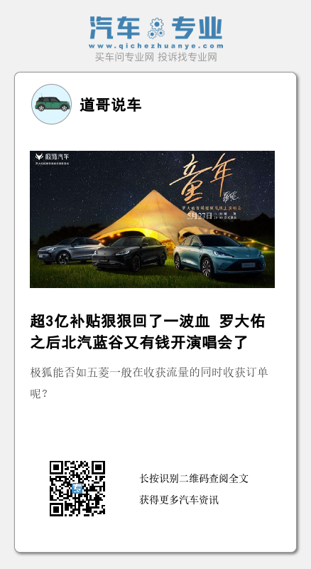 当然,如果北汽蓝谷再次为极狐开一场演唱会,对于极狐来说未必是件坏事,至于请谁,或许是个问题。