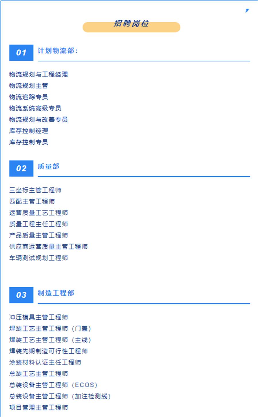 【文/道哥说车 听风吟】日前,宝能汽车前员工群中出现了一则关于宝能汽车社招的文章,发布者为“新注册用户”,根据社招内容,宝能汽车将招聘计划物流部、质量部、制造工程部三大部们员工,涉及岗位达23个。