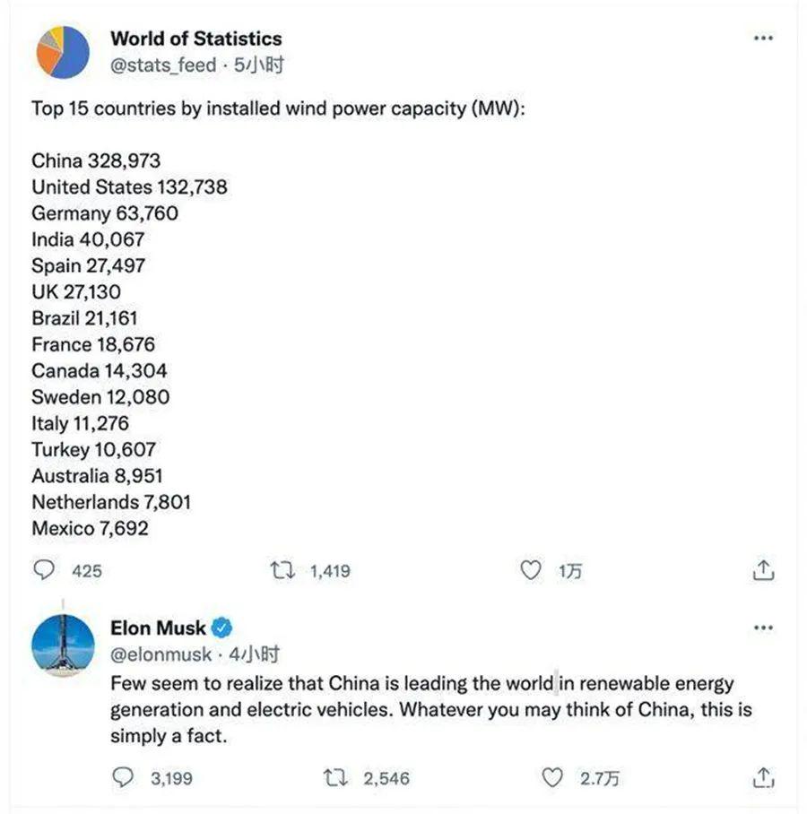 【文/道哥说车 听风吟】日前,被戏称为“中国夸夸群群主”的特斯拉CEO埃隆·马斯克,再次夸赞了一次中国。其在推特发文称,“似乎很少有人意识到,中国在可再生能源发电和电动汽车领域正处于世界领先地位。无论你怎么看中国,这都是事实。”